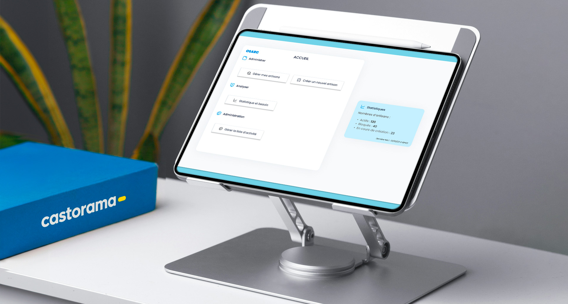 Avec Agilizy, développeur de solution d'outils professionnels, nous avons co-créer une plateforme côté vendeur/vendeuse pour Castorama nommé OSARC. Cet outil a pour but de répertorier tous les artisan-es, toutes disciplines confondus. Ces entreprises comme des plombiers par exemple, possèdent des habilitations spécifiques. Ainsi un client ayant prévu un chantier avec tel ou tel prestation pourra être reconduit par un spécialiste de sa région. Le vendeur ou la vendeuse pourra suivre la progression d'un chantier incluant tous ces acteur-ices. La difficulté de mon côté a été de clarifier les visuels et l'ergonomie, tout en valorisant les nombreuses données à mettre en avant.