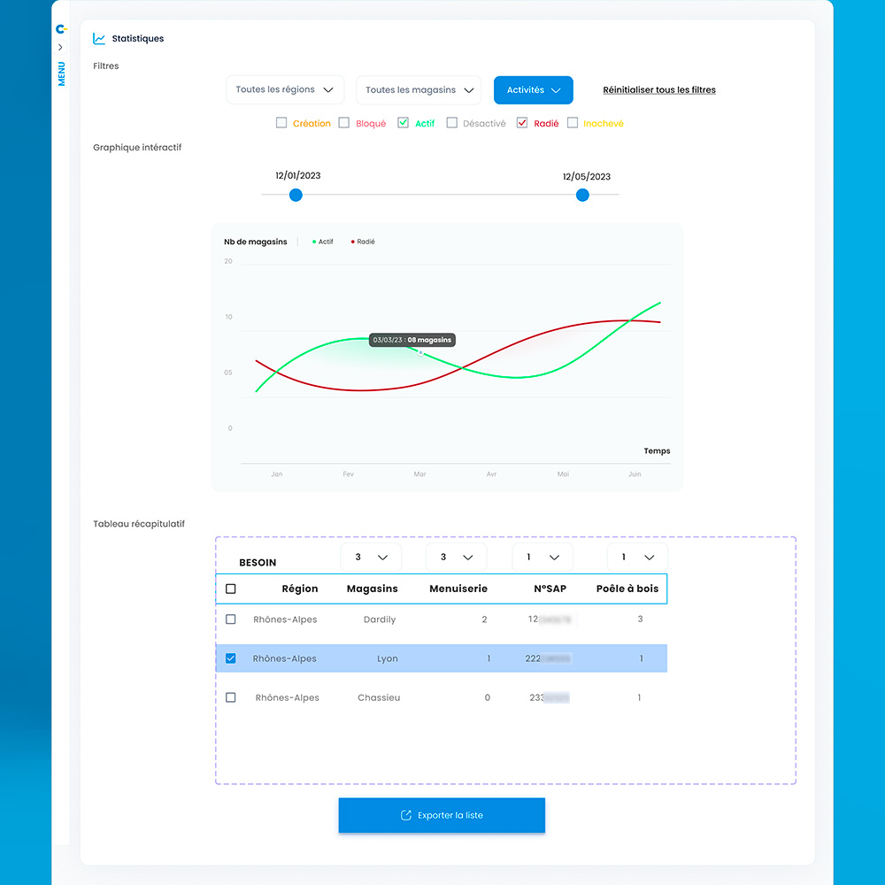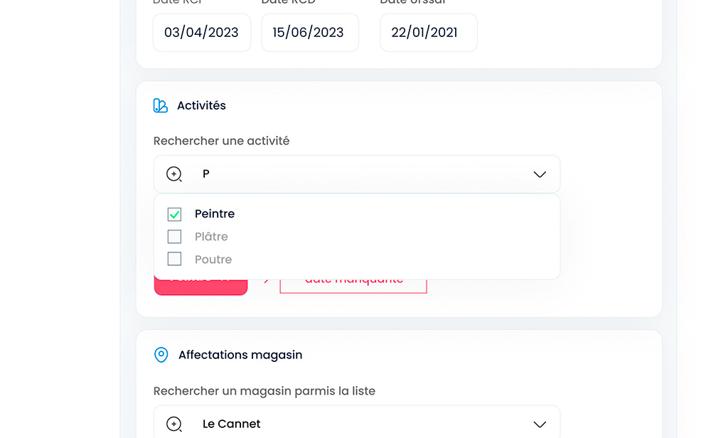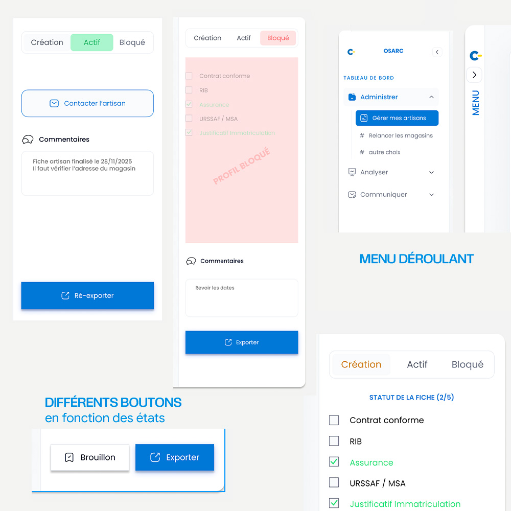 Avec Agilizy, développeur de solution d'outils professionnels, nous avons co-créer une plateforme côté vendeur/vendeuse pour Castorama nommé OSARC. Cet outil a pour but de répertorier tous les artisan-es, toutes disciplines confondus. Ces entreprises comme des plombiers par exemple, possèdent des habilitations spécifiques. Ainsi un client ayant prévu un chantier avec tel ou tel prestation pourra être reconduit par un spécialiste de sa région. Le vendeur ou la vendeuse pourra suivre la progression d'un chantier incluant tous ces acteur-ices. La difficulté de mon côté a été de clarifier les visuels et l'ergonomie, tout en valorisant les nombreuses données à mettre en avant.